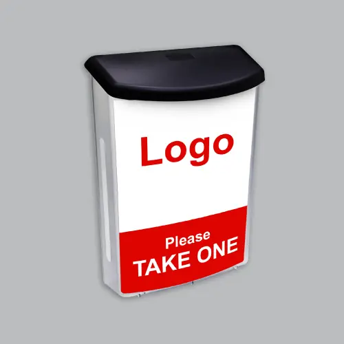 Real estate outdoor brochure boxes with the phrase “Please Take One” printed on the front are a convenient way to give out your real estate brochures, flyers, feature sheets or postcards. Our outdoor brochure boxes are made with durable plastic and can be mounted on signposts, walls and everywhere needed. Each realtor brochure holder can hold up to 200 paper sheets (8.5” x 11”).