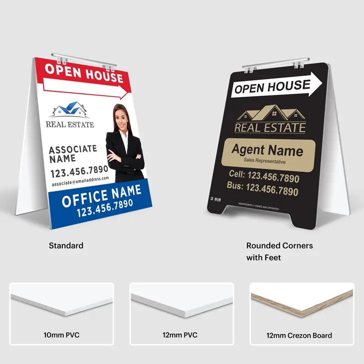 Attract immediate local attention to your listings with our high-performance, portable Sandwich Board signs, specifically engineered for independent real estate agents. Constructed from robust, premium-grade materials, these signs are designed for indefinite reuse, offering exceptional long-term value. Built to withstand harsh outdoor environments, they are the perfect, resilient advertising solution for placement on front lawns, yards, sidewalks, or near garage sales.