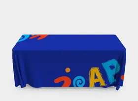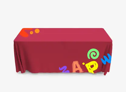 Cover the basics in style to establish brand elegance from the get-go. Our Regular Table Covers are printed in full colour using dye-sublimation on 100% wrinkle-resistant, flame-retardant polyester fabric. They offer vibrant colors and long-lasting visuals that won’t tear or fade with repeated use. Regular Table Covers are an essential when it comes to presenting a clean and branded look at trade shows, conferences, open houses, and promotional displays. They are durable, shrink-free, washable, and very easy to maintain. Our Regular Table Covers are available in multiple sizes and side options to suit any setup. You can also choose from hot knife cut or sewn edges finishing. Explore all options below: